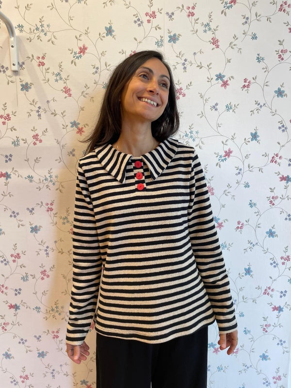 Tessuto morbido e confortevole, bottoni vintage e un colletto meraviglioso.
