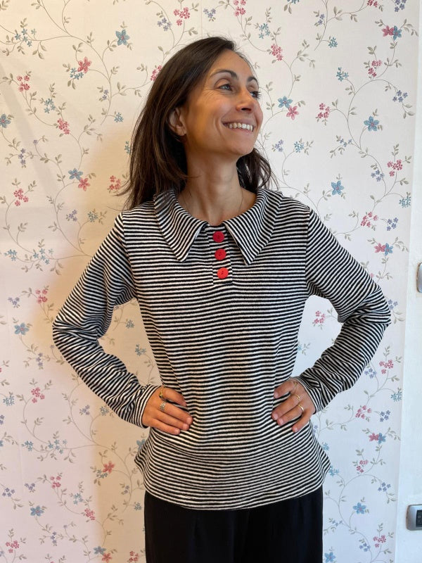 Tessuto morbido e confortevole, bottoni vintage e un colletto meraviglioso.