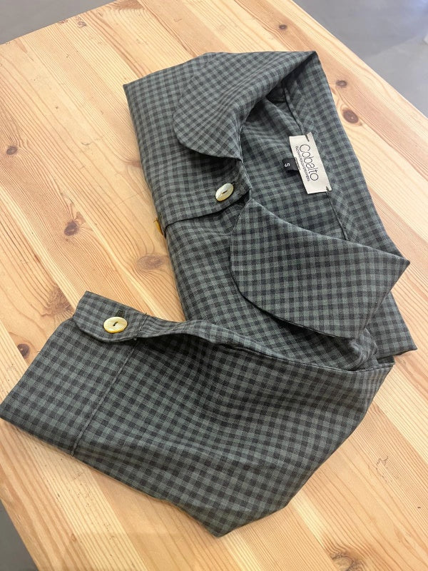 La camicetta in scacco Vichy verde rosmarino è perfetta per accompagnarti in autunno, con la giacca o da portare sotto a un maglioncino o un gilet.