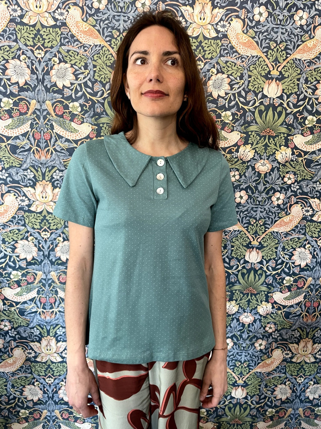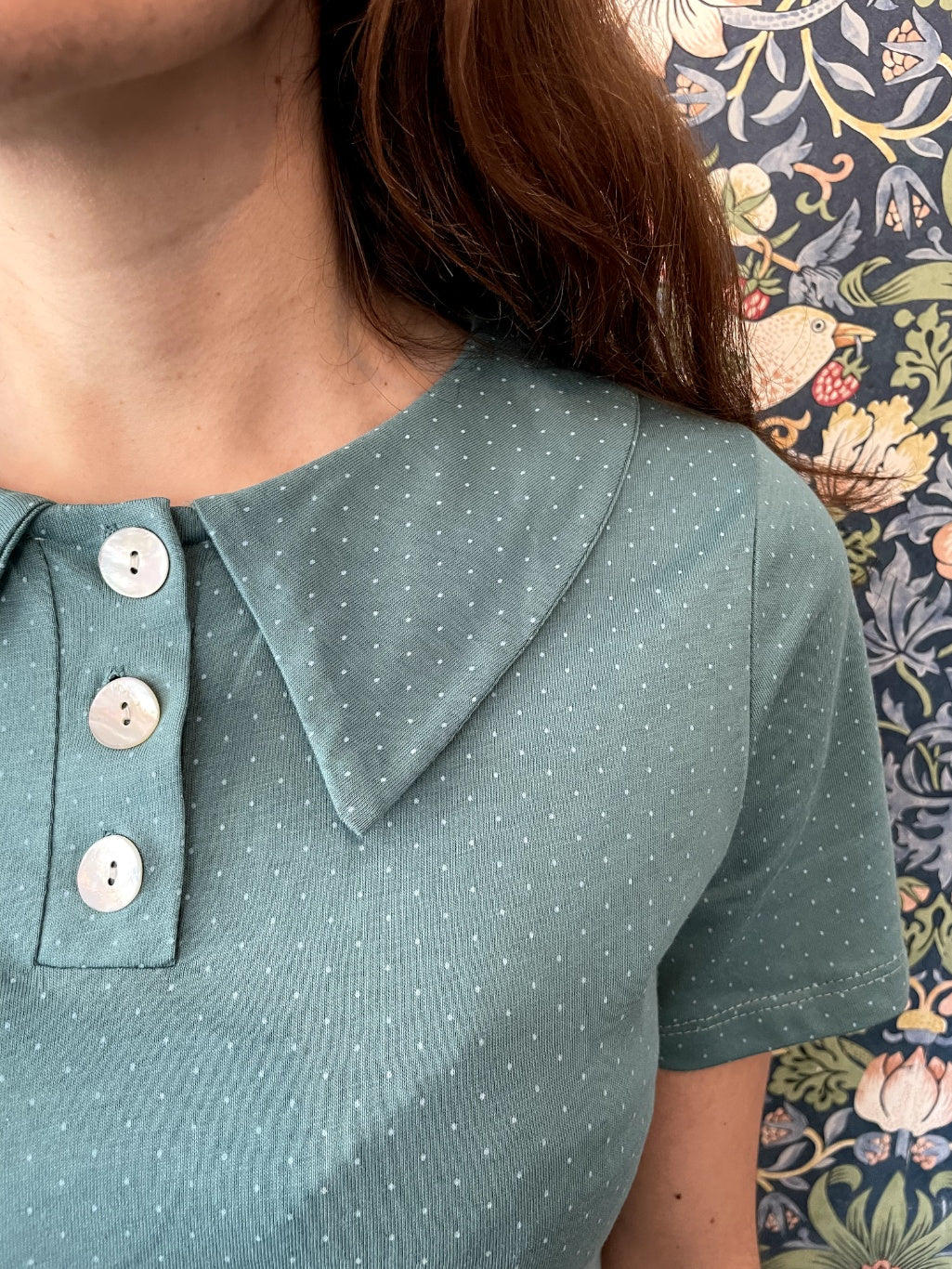Tessuto morbido e confortevole, colore stupendo e un colletto meraviglioso.