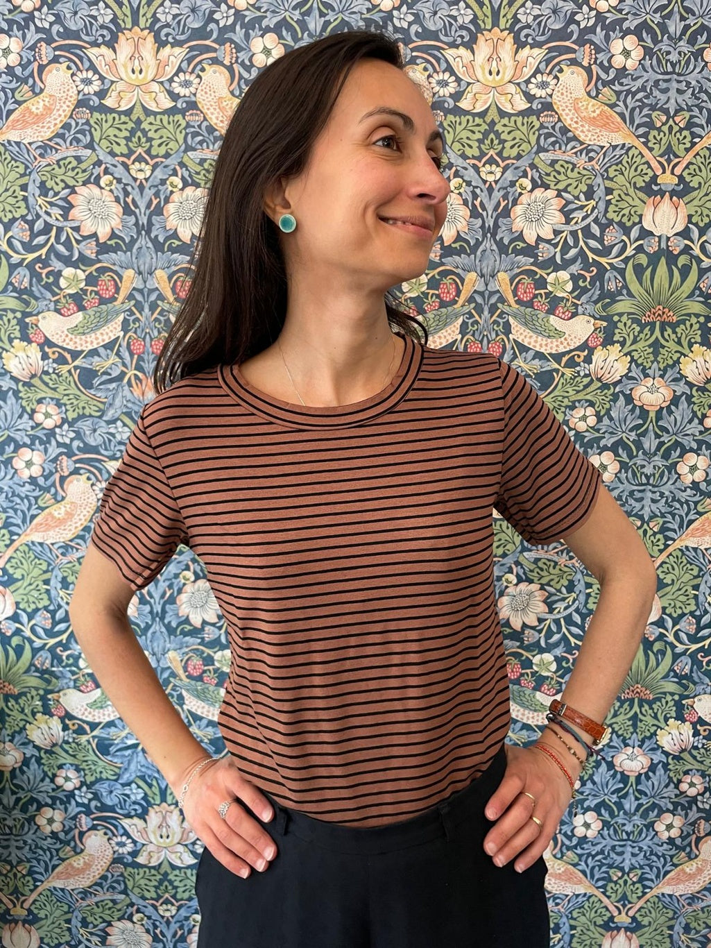 T-shirt righine nere e biscotto